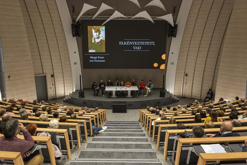 A könyvbemutató a szerzővel folytatott pódiumbeszélgetéssel egészült ki. Ennek során az író elárulta: Neumann a munkáin keresztül beszél hozzánk a könyvében, ez az oka annak, hogy az ő szájából gyakorlatilag egy szó sem hangzik el.