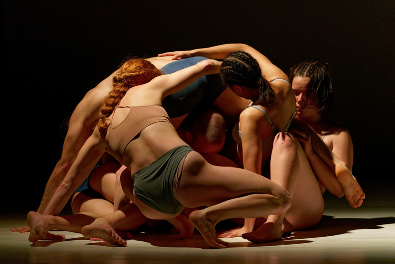 A hét táncos elképesztő fizikalitása azonnal megragadja a figyelmünket, ahogy látjuk az izmaikat lassan mozdulni, a bőrüket összesimulni, miközben a végtagjaik összegabalyodnak egy emberi architektúrában, akár egy miniatűr társadalomban. A meleg fények és a testszínű jelmezek is az ismerősség és az intimitás érzését keltik. De amint „felrobbantják” ezt az organikus együttlétet, az egyének egymásnak feszülnek és önmagukkal is megküzdenek, a testük feszültségtől vibrál, miközben utakat keresnek a túlélési ösztön és a szükségszerű együttműködés között.