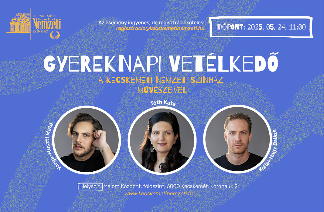Koltai-Nagy Balázs és Varga-Huszti Máté színművészek, valamint Tóth Kata dramaturg játékos vetélkedővel várják a gyermekeket, akik kedvenc művészeik társaságában tesztelhetik tudásukat a színház világáról.