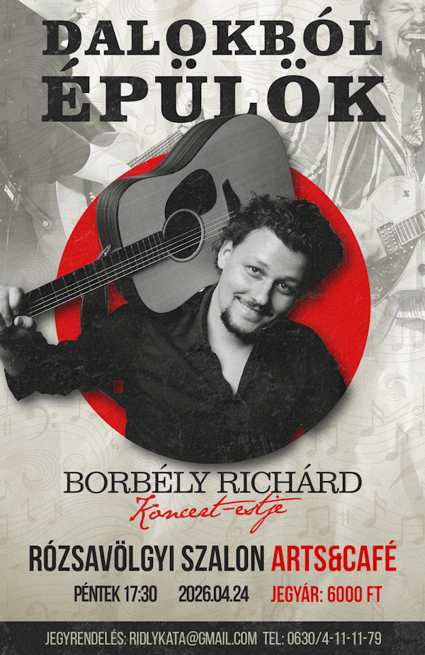 2026. április 24., péntek 17:30 – 19:00 – Rózsavölgyi Szalon – Borbély Richárd koncert-estjeBelépődíj:6000 Ft