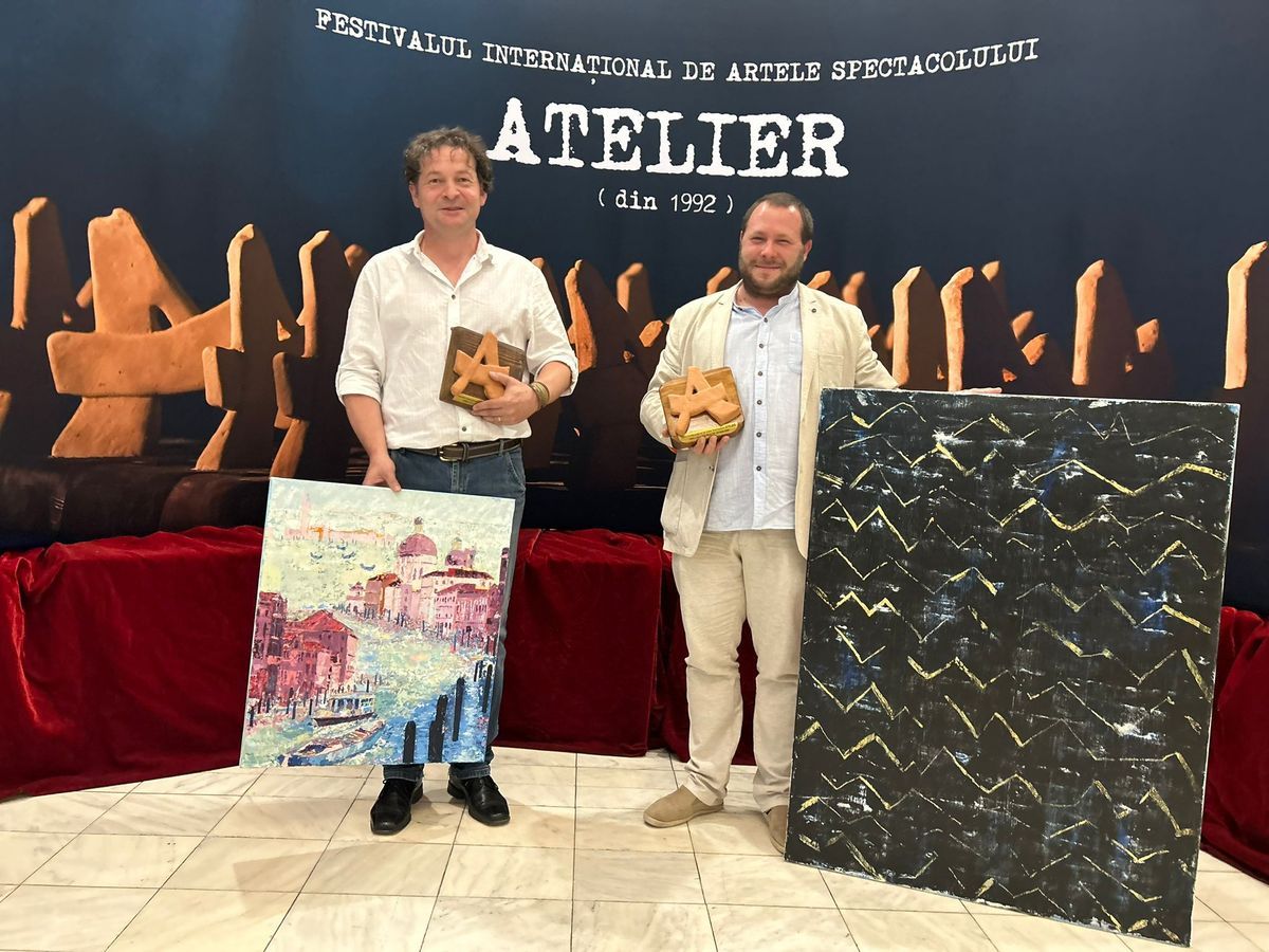A világhírű nagybányai festőiskola városában szervezett Atelieren a díjakhoz - stílszerűen - egy-egy helyi festőművész alkotása is társul: a legjobb előadásért járó társulati díj mellé Adrian Prykop A víz hulláma (Unda apei) című alkotását, a legjobb férfi főszereplő díjával pedig Hereș Alin Velence című festményét is átvehették a társulat képviselői.